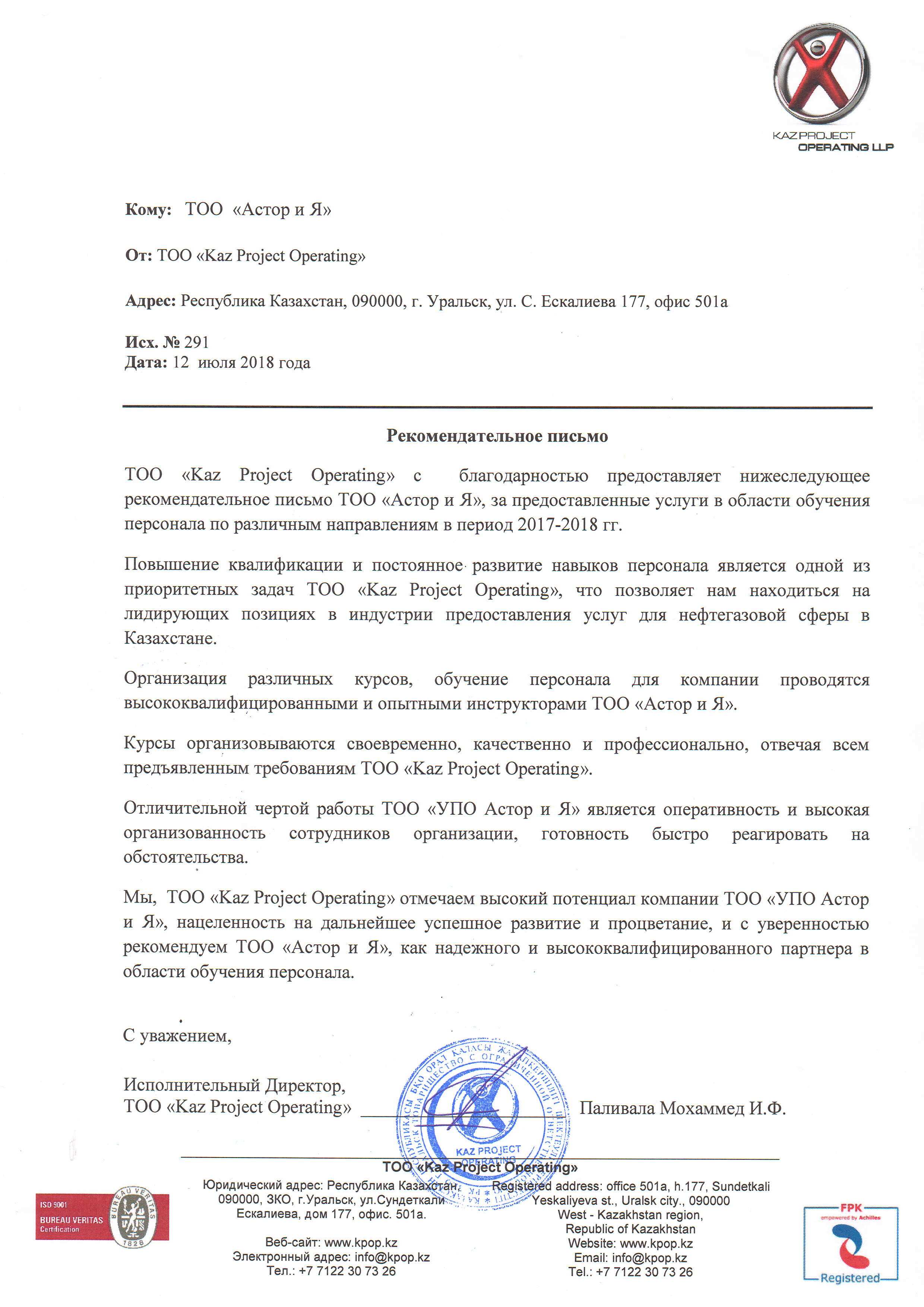ТОО «УПО АСТОР И Я»